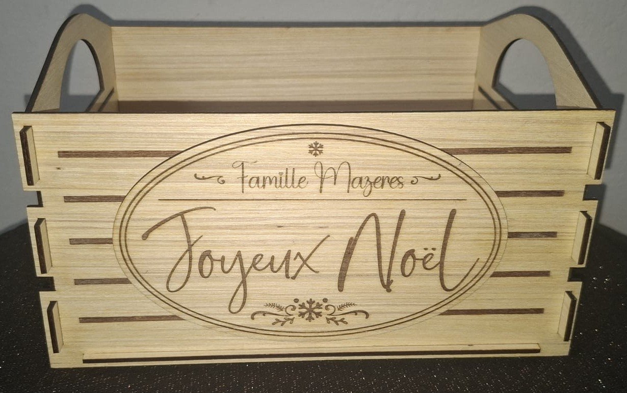 Cagette en bois personnalisée gravée au laser, parfaite pour offrir ou décorer à Noël.