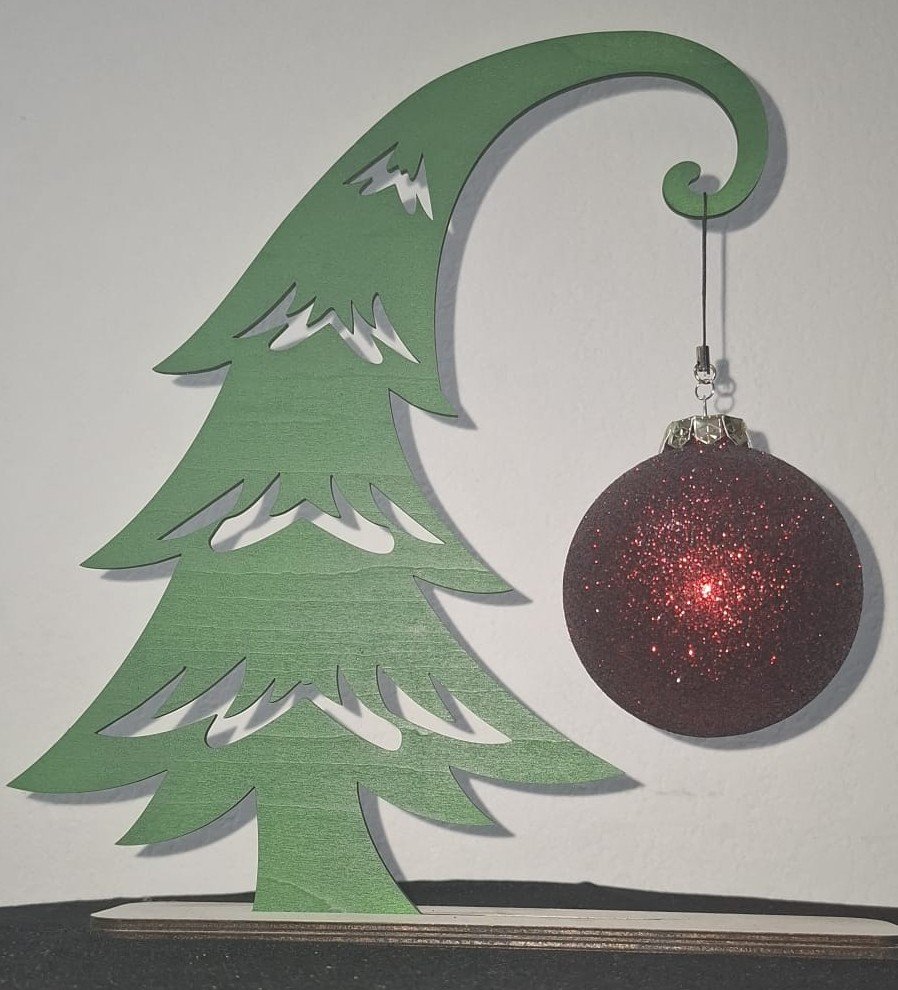 Sapin couché avec boule de Noël – Support décoratif en bois
